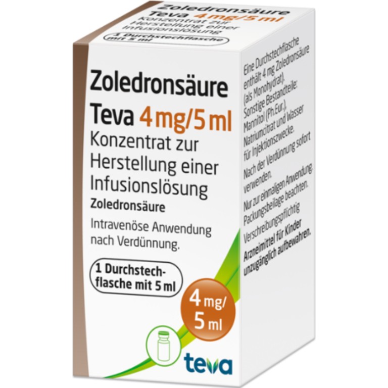 Препорачаната доза на zoledronic acid за превенција на настани поврзани со “оштетување ”на скелетот кај пациенти со напредни малигнитети е 4mg на секои 3 - 4 недели. Дополнително, кај овие пациенти се препорачува перорална администрација на 500mg калциум дневно и 400 IE витамин D дневно.