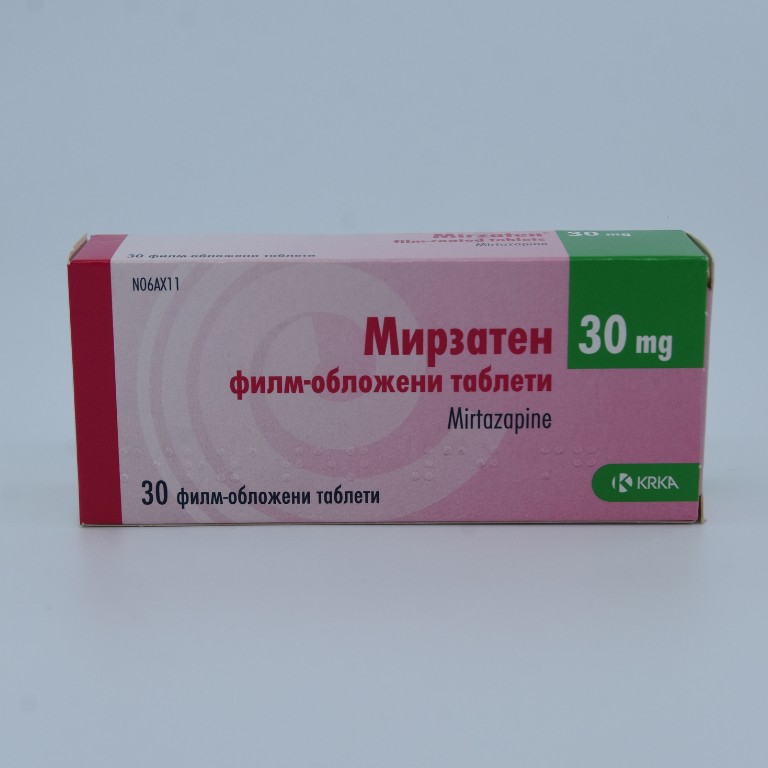 Mirtazapine претставува тетрацикличен антидепресив со норадренергична и серотонинергична активност, антагонист на пресинаптичките α2-адренергични рецептори на ниво на CNS, силен антагонист на серотонинергичните 5-НТ2- и 5-НТ3-рецептори и периферен α1-адренергичен антагонист.