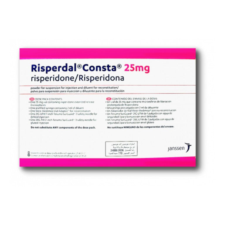 Препорачана почетна доза на risperidone е 25mg, администрирана интрамускулно, во облик на длабока интрамускулна делтоидна или глутеална инјекција.